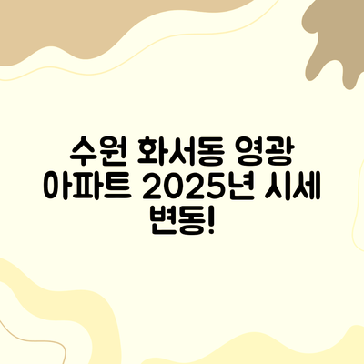 경기도 수원시 팔달구 화서동 영광 아파트의 투자 가치를 고민하는 많은 사람들이 있습니다. 특히 2025년 9월 시세와 관련된 정보는 실질적인 투자 결정에 큰 영향을 미칠 수 있습니다.
