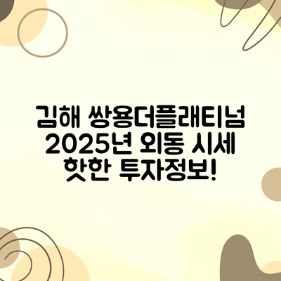 경상남도 김해시 외동 쌍용더플래티넘김해 아파트에 대한 투자 결정을 내리기 위해서는 몇 가지 중요한 사항을 고려해야 합니다. 2025년 9월 시세와 관련된 정보를 바탕으로 단계별로 안내드립니다.