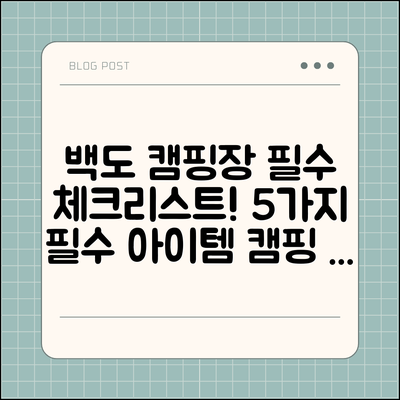 백도오토캠핑장에서 완벽한 캠핑 경험을 위해 사전에 준비할 목록을 제공합니다. 이 체크리스트는 초보자뿐만 아니라 경험이 있는 캠핑족에게도 유용합니다.