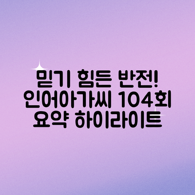 이번 인어아가씨 104회에서는 자주 나타나는 신뢰와 배신의 복잡한 관계가 주목받고 있습니다. 각 캐릭터의 선택이 서로에게 미치는 영향을 분석해보겠습니다.