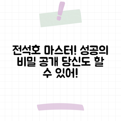 이런 단계들을 통해 전석호처럼 영향력 있는 배우가 되기 위한 길을 걸어갈 수 있습니다. 끊임없는 도전과 노력이 필요하지만, 재미도 느끼면서 함께 해보세요! 여러분의 꿈을 이루는 첫 번째 단계를 시작해봅시다!