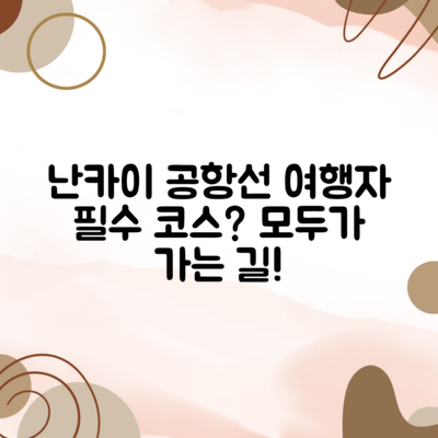 이러한 사전 정보 확인과 경로 선택을 통해 여행을 더욱 효율적으로 진행할 수 있습니다. 난카이 공항선은 편리하고 저렴한 대안이 될 수 있으니, 시행착오를 줄이고 사전 준비를 철저히 하는 것이 중요합니다.